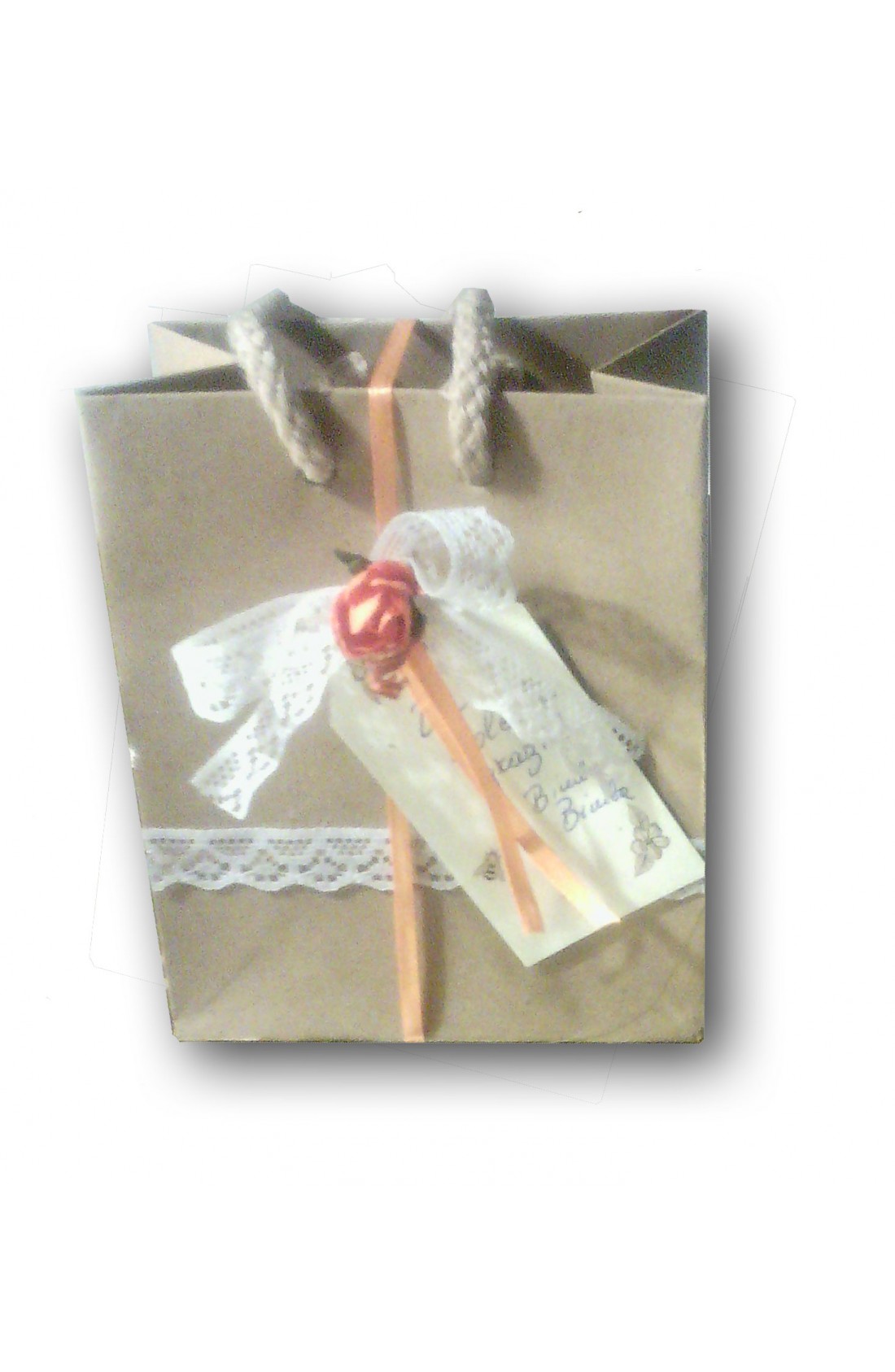 Due vasetti da gr 50 in una minishopper avana decorata con manico in corda,