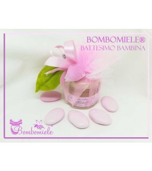Bomboniera o Segnaposto per Annuncio di Nascita Bambina - vasetto miele gr 30 chiuso a fiore