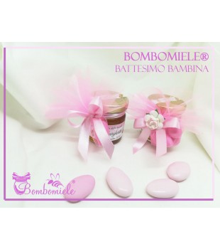 Bomboniera o Segnaposto per annuncio di nascita Bambina - vasetto miele gr 50 con 1 0 3 confetti