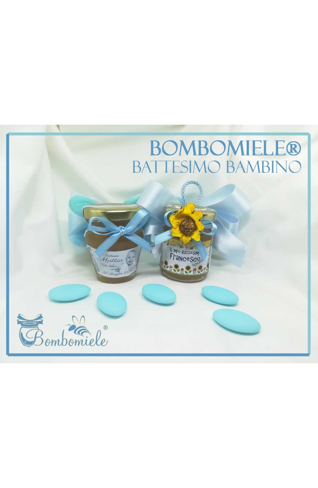 Bomboniera o Segnaposto per Annuncio di nascita bambino - vasetto miele gr 80 - standard o anforina con 5 confetti
