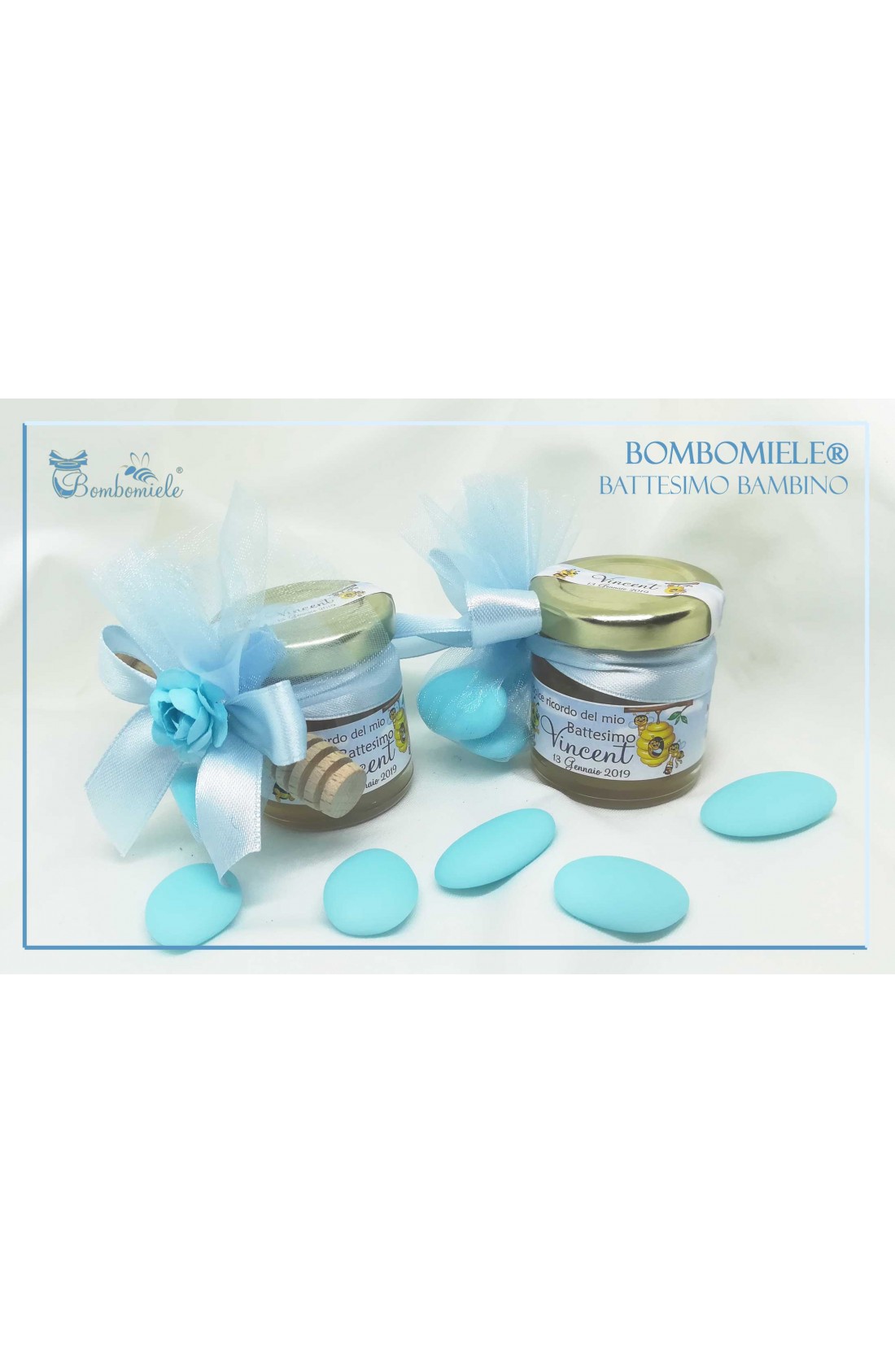 Bomboniera o Segnaposto per annuncio di nascita con 1 o 3 confetti vasetto miele gr 50