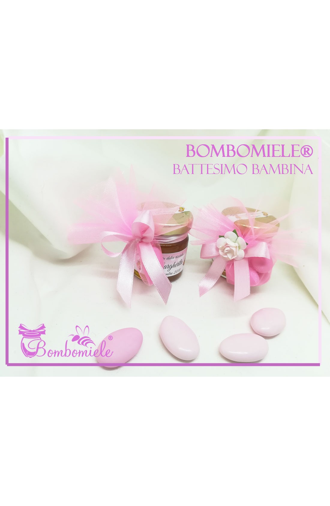 Bomboniera o Segnaposto per Battesimo Bambina - vasetto miele gr 50 con 1 0 3 confetti