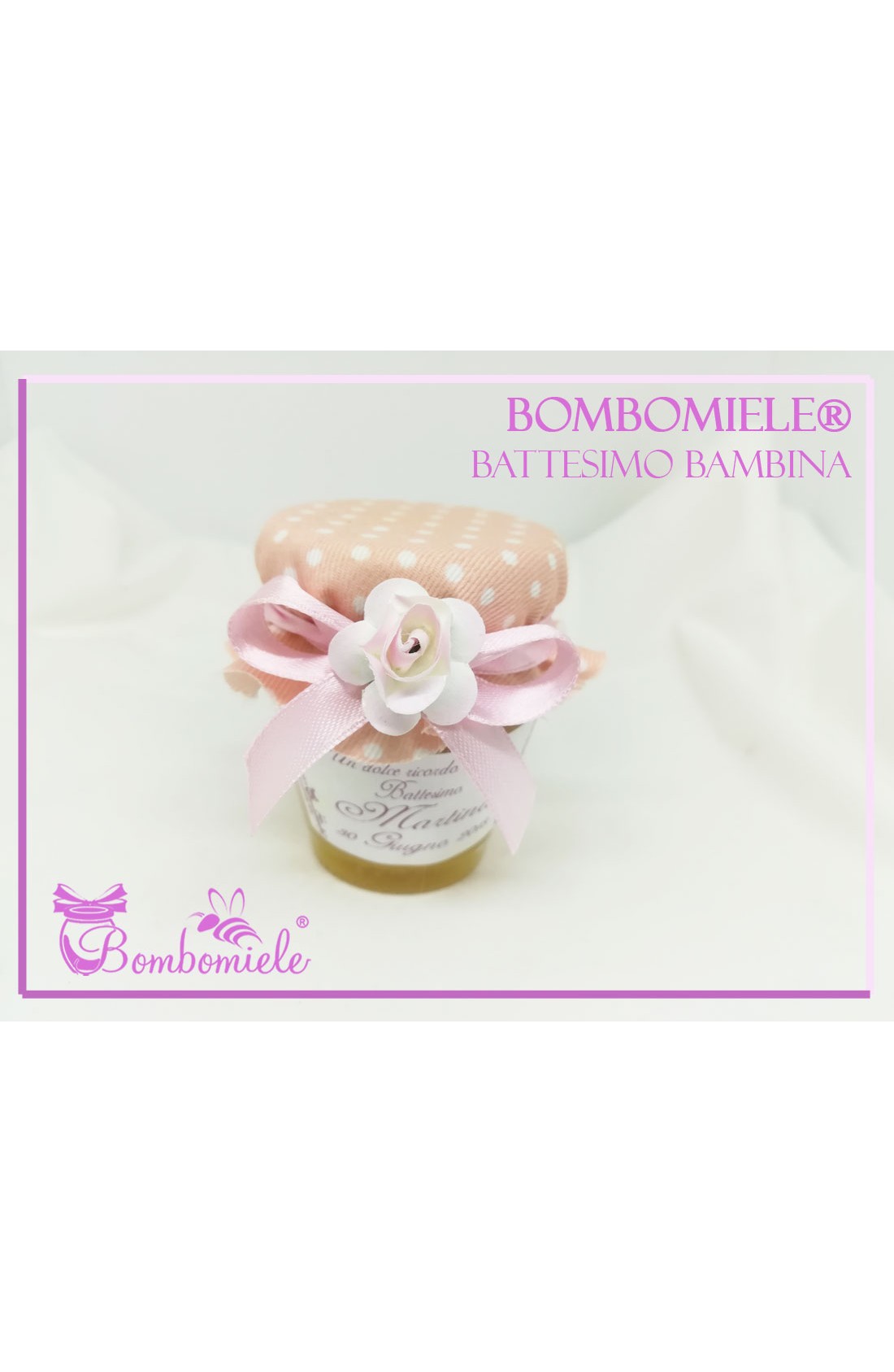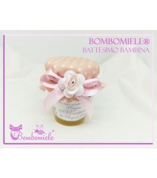 Bomboniera o Segnaposto per Battesimo Bambina - vasetto miele gr 80 - standard o anforina con copritappo